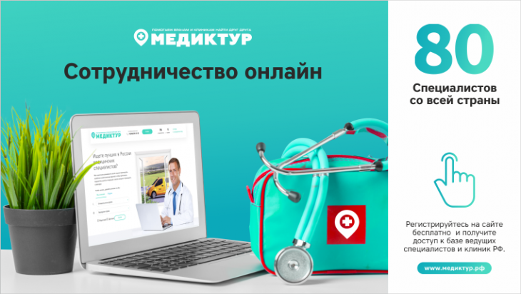 С сервисом «Медиктур» вы можете сотрудничать онлайн. Регистрируетесь на сервисе и получаете доступ к нашей базе докторов. Общаетесь с доктором через форму «Связаться» Все подтверждающие сведения о вашей клинике предо...